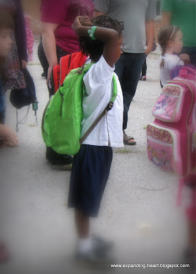 Today was the day that Jadon has been waiting for!  He was so excited to be starting school today.  When we had a "first meeting" with his teacher on Wednesday, she gave him a very cute card with confetti to sprinkle under his pillow last night, to encourage a good night sleep.  He was delighted by that.  He did show a few signs of nervousness as we entered the schoolyard this morning (lip-biting, fidgety hands, etc.), but he went right to his class line and listened to the instructions from his teacher.  It will be fun to hear about his first day!